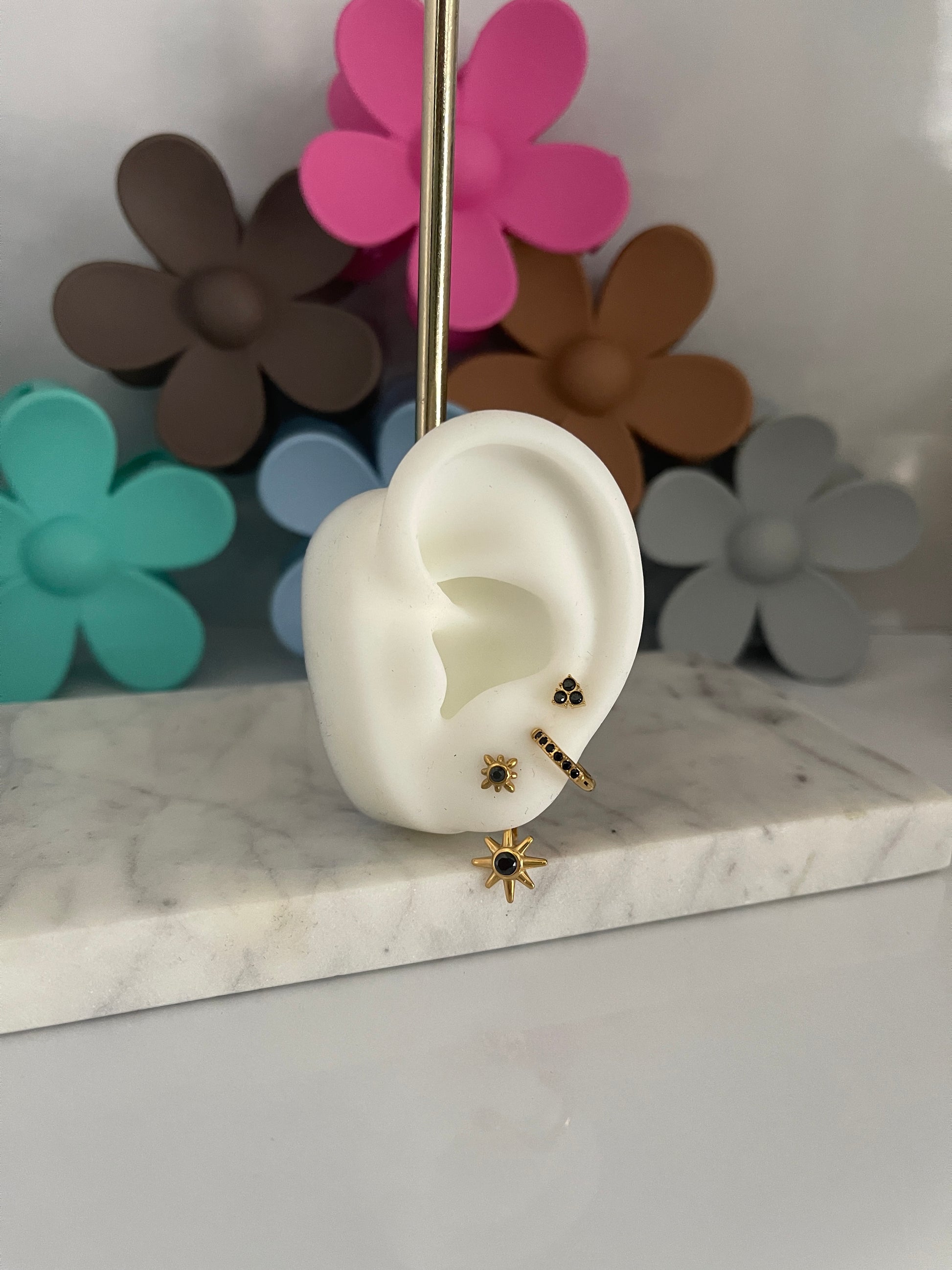 Get your ear party started with Trío Studs! This set of three stunning studs in black, green, and white will elevate any ear layering game. Made with durable stainless steel, these studs are the perfect combination of style and function.